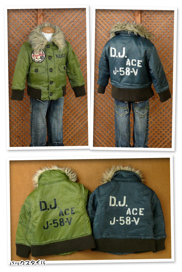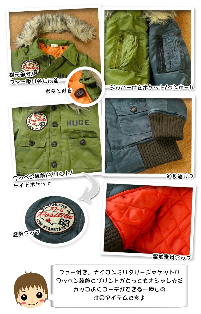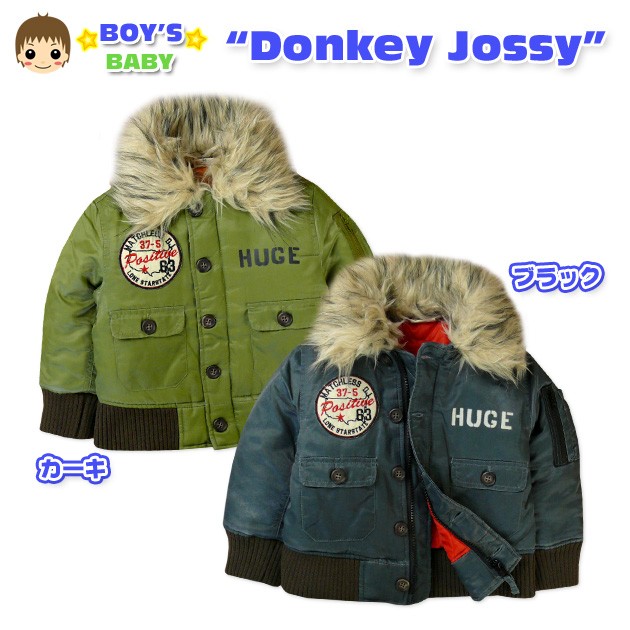 送料無料 男児ベビー ジャケット Donkey Jossy/ドンキージョシー ワッペン装飾&ファー付き ナイロンミリタリージャケット90cm 95cm