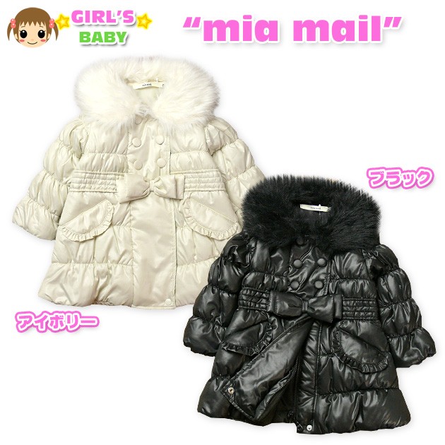 【女児ベビー】【コート】mia mail/ミアメール ファー衿付きシャーリングデザイン 中綿ロングコート【90cm】【95cm】 メール便不可