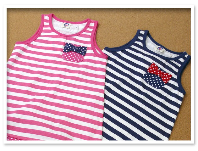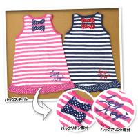 子供服 女の子 タンクトップ ワンピース ボーダー柄 リボン ドット切替 女児 キッズ 110cm 120cm 130cm メール便OK