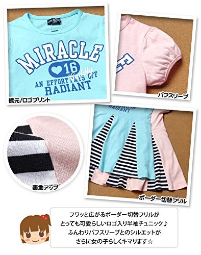 子供服 女の子 チュニック 半袖 パフスリーブ ボーダー切替フリル ロゴプリント 女児 キッズ 110cm 120cm 130cm メール便OK