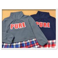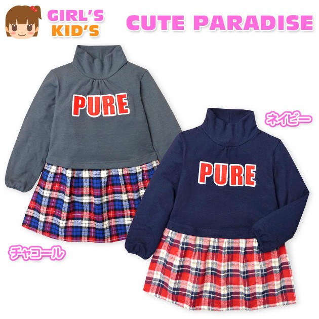 送料無料 子供服 女の子 ドッキング ワンピース 長袖 ハイネック ロゴチェック柄 女児 キッズ 110cm 120cm 130cm メール便対応