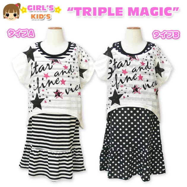 女児キッズ アンサンブル TRIPLE MAGIC ミニ丈Tシャツ&ワンピース ドルマンアンサンブル100cm 110cm 120cm 130cm
