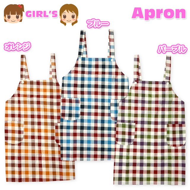 子供 エプロン 女の子 H型 チェック柄 後ろひも留め 女児 キッズ ジュニア 110cm 130cm 150cm メール便OK