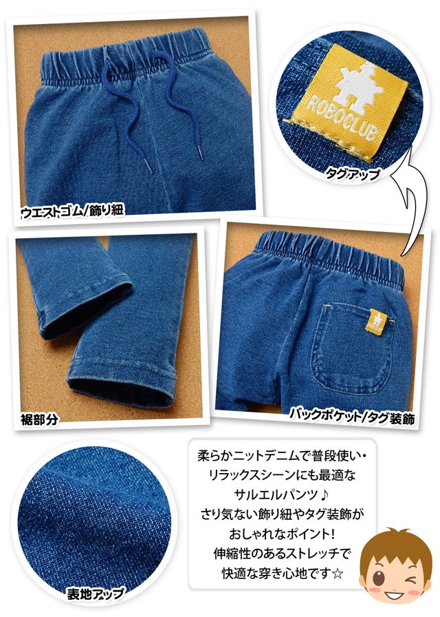 送料無料 ベビー服 男の子 サルエル パンツ ボトム ニットデニム リラックスパンツ ストレッチ 男児 ベビー 80cm 90cm 95cm メール便対応