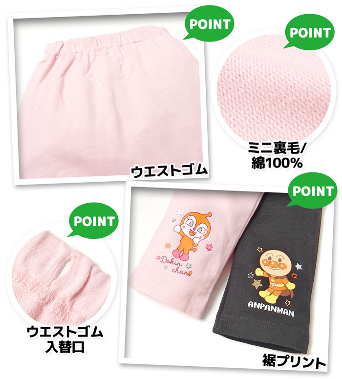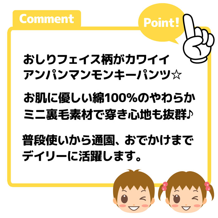送料無料 男児 女児 ベビー ロング モンキー パンツ アンパンマン ミニ裏毛 綿100% おしりフェイス ウエストゴム iw-0910 メール便対応