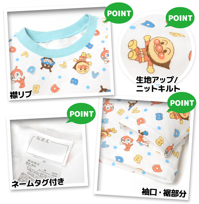 送料無料 男児 ベビー ニットキルト 長袖 パジャマ アンパンマン 上下組 あったか素材 保温 肌側綿100% マチ付きパンツ iw-0979b-sx メール便対応