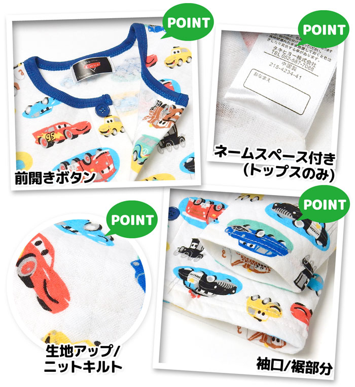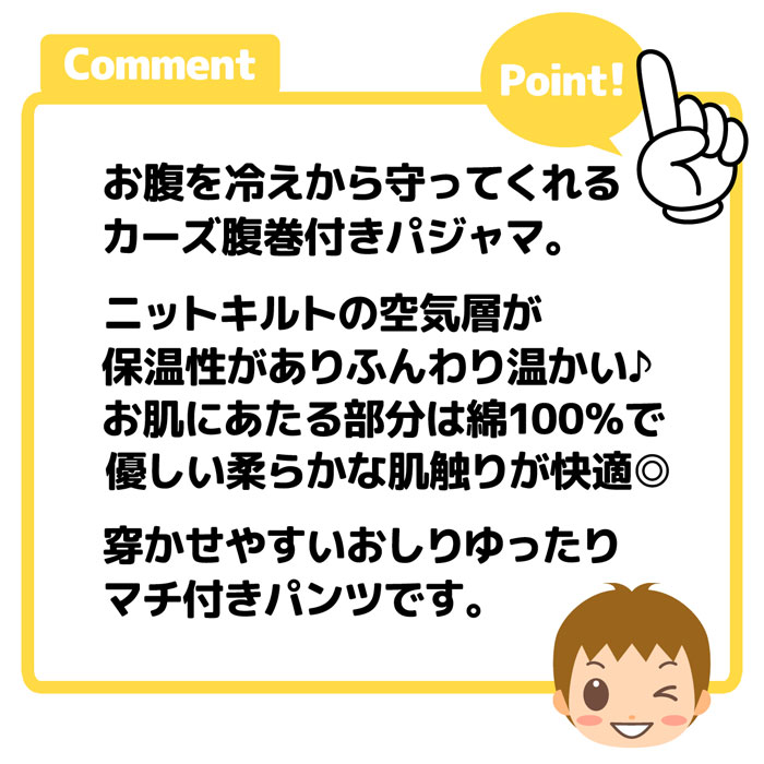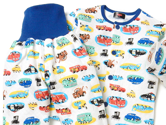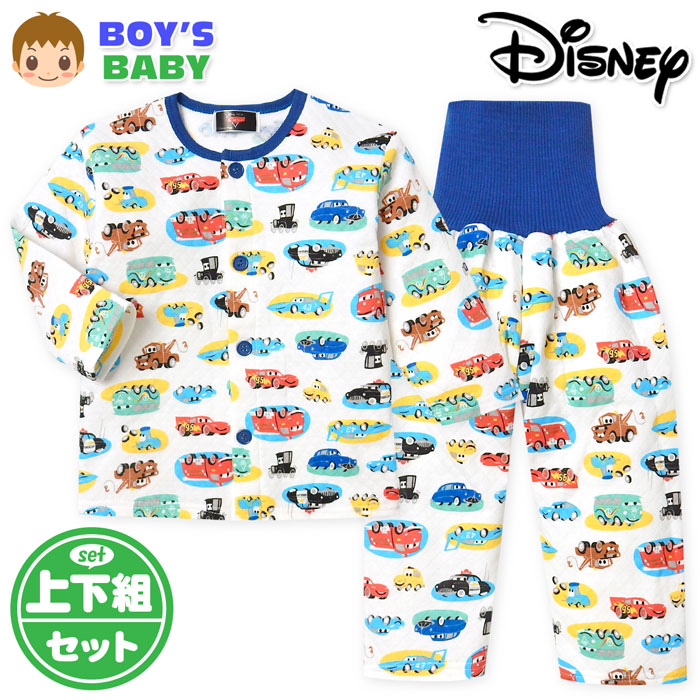 送料無料 男児 ベビー ニットキルト 長袖 パジャマ Disney ディズニー カーズ 腹巻付 前開き 肌側綿100% 保温性 上下組 後ろマチ 男の子 iw-1012 メール便対応