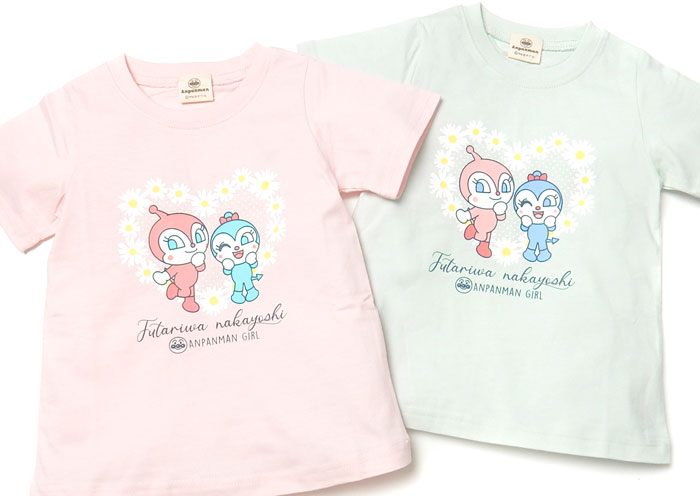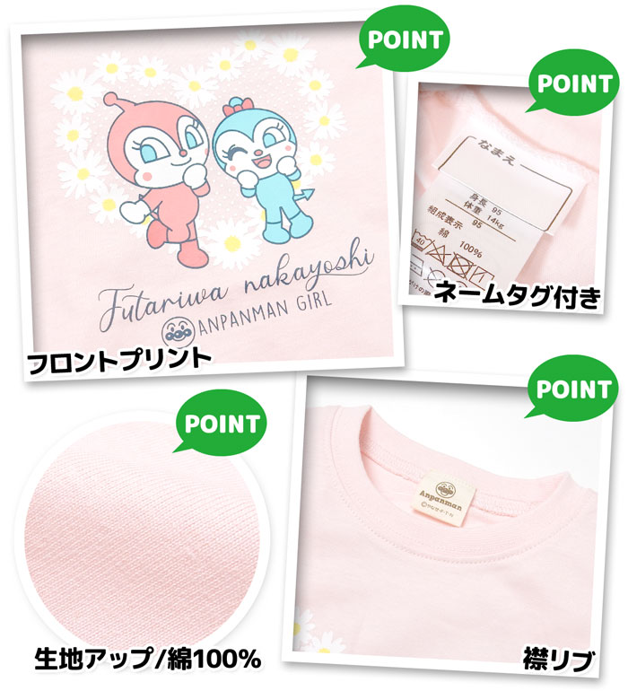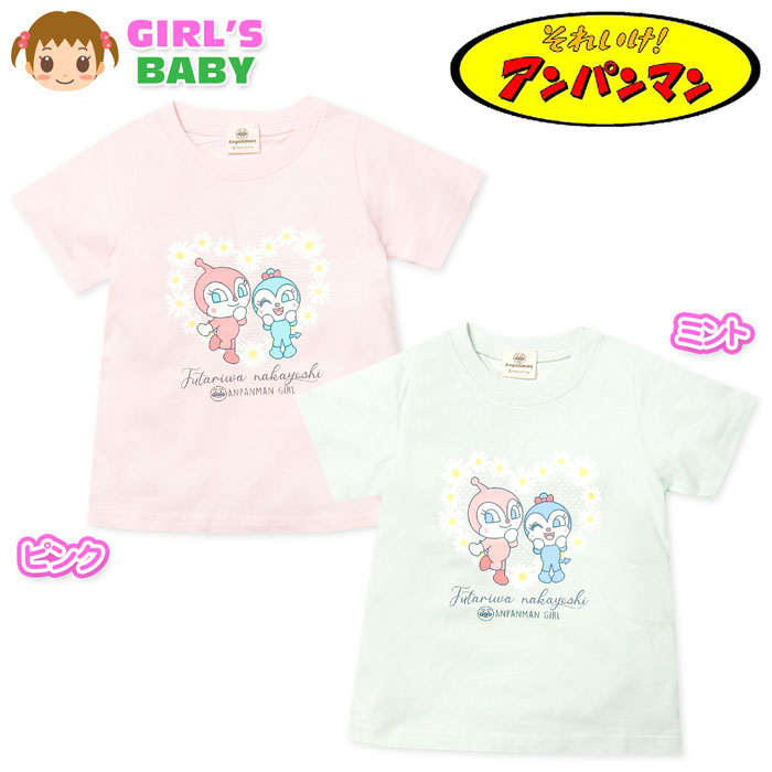送料無料 女児 ベビー 綿100% 半袖 Tシャツ アンパンマン お花プリント ネームタグ ベビー服 女の子 80cm 90cm 95cm iw-1110 メール便対応