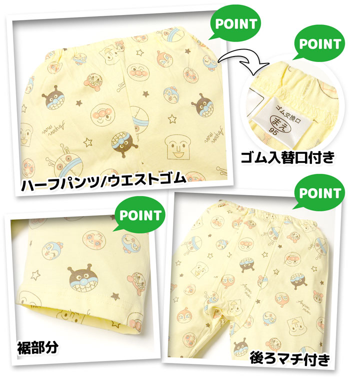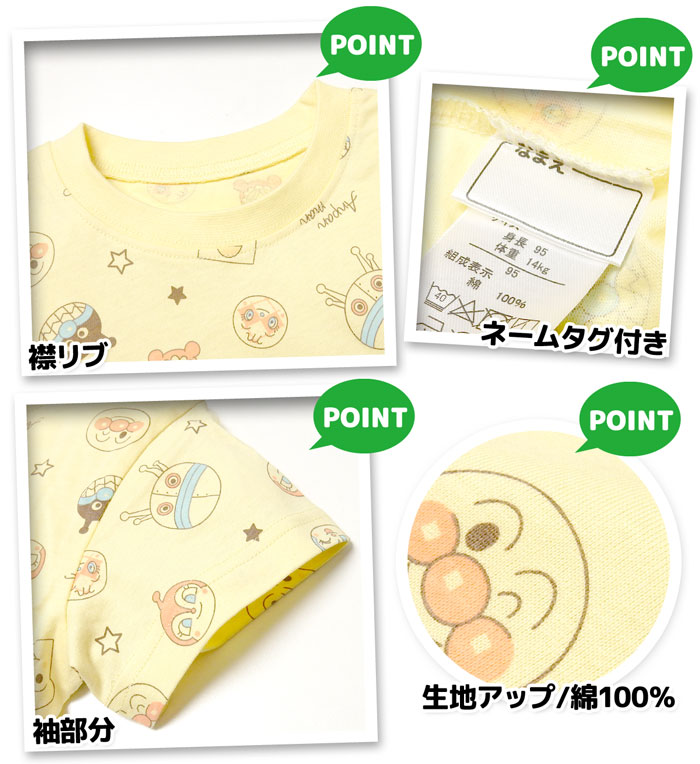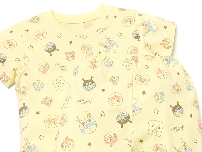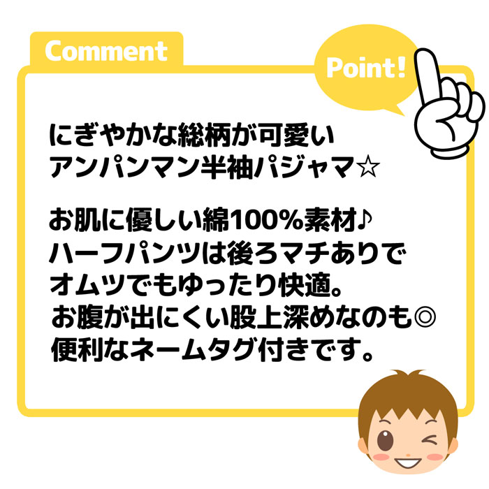 送料無料 男児 ベビー 綿100% 半袖 パジャマ アンパンマン 上下組 ハーフパンツ おしりゆったり 股上深め ネームタグ iw-1133b-ye メール便対応