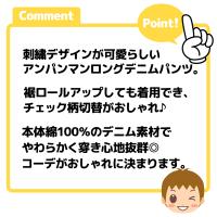 送料無料 男児 ベビー デニム ロング パンツ アンパンマン 刺繍 裾ロールアップ チェック ウエストゴム ボトムス iw-1236 メール便対応