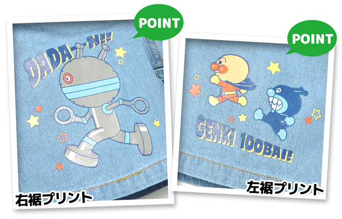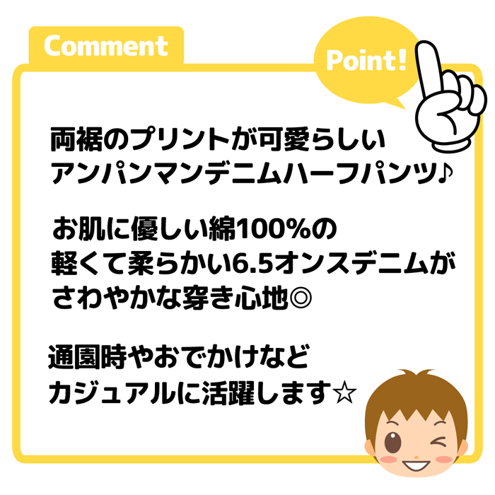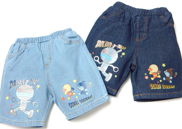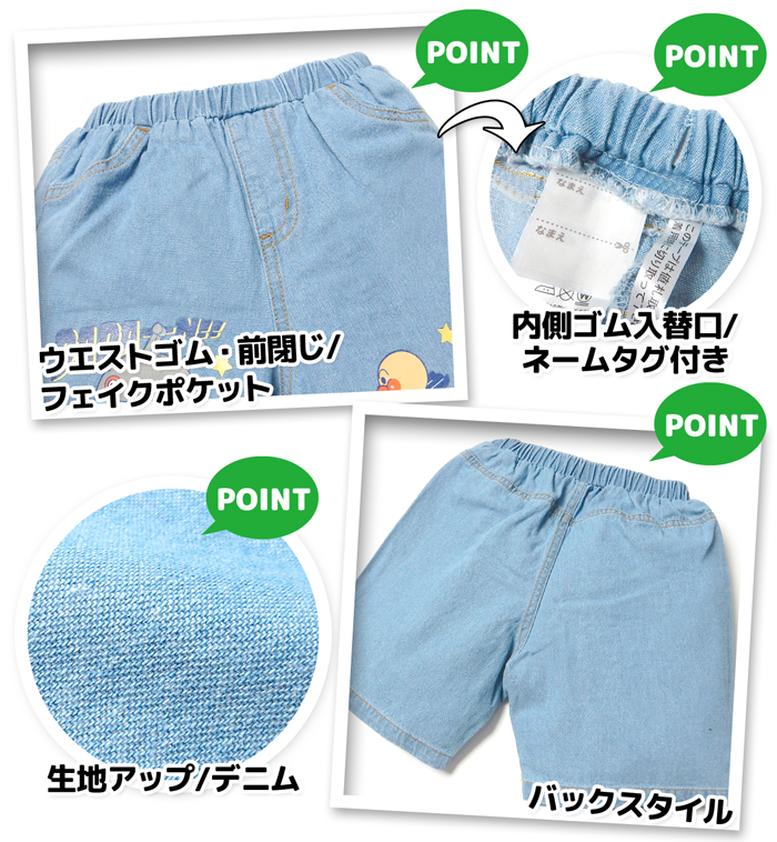 送料無料 男児 ベビー デニム ハーフ パンツ アンパンマン 綿100% ネームタグ ウエストゴム ボトムス ベビー服 男の子 iw-1273 メール便対応