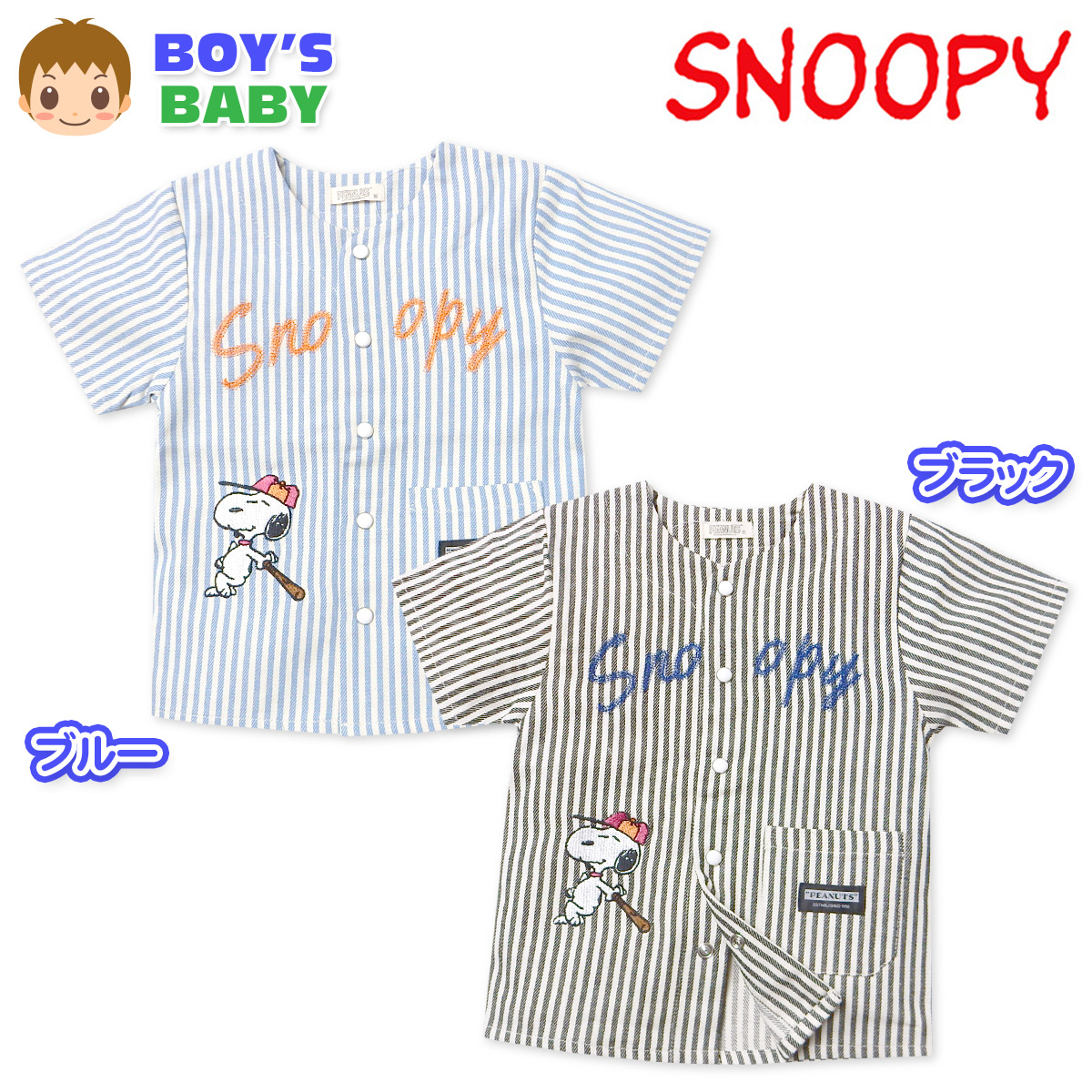 送料無料 男児 ベビー ベースボールシャツ 半袖 SNOOPY/スヌーピー コットンツイル 綿100% 前開きスナップボタン iw-1283 メール便対応