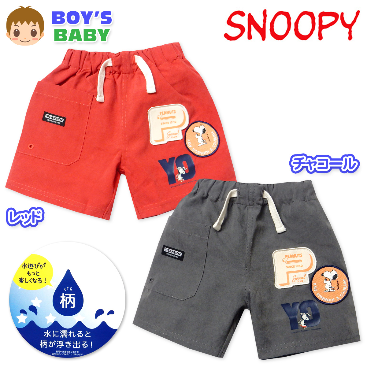 送料無料 男児 ベビー 水陸両用 ショート パンツ SNOOPY/スヌーピー 水に濡れると柄が浮き出る ウエストゴム ボトムス iw-1286 メール便対応