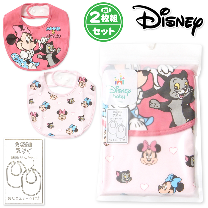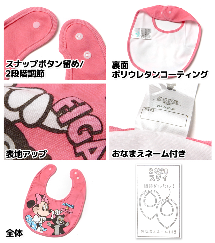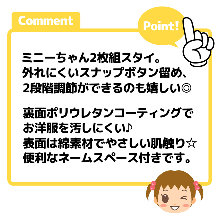 送料無料 2枚組セット 女児 ベビー スタイ よだれかけ Disney ディズニー ミニー スナップボタン 裏面ポリウレタンコーティング iw-1287b-bb メール便対応