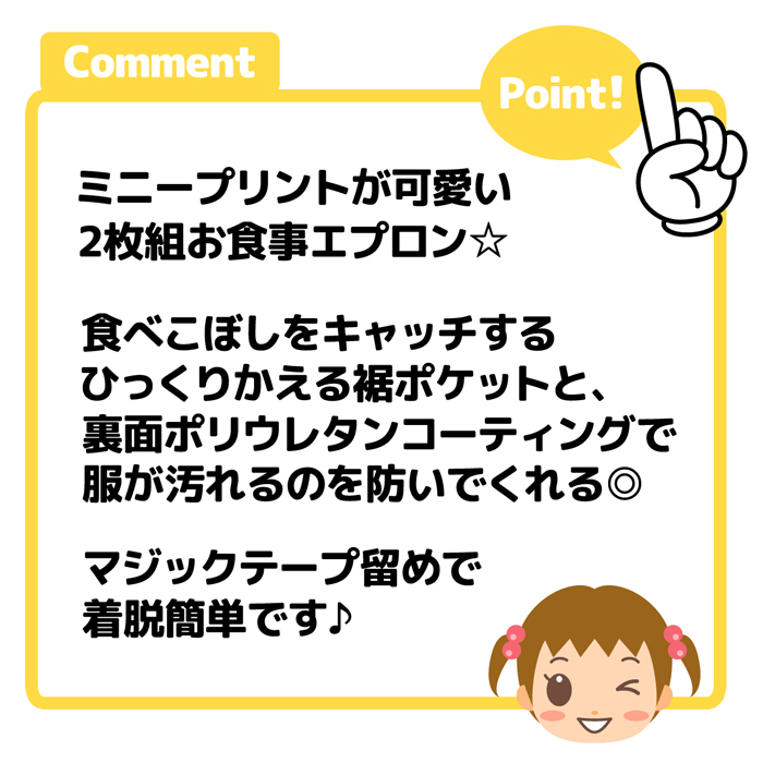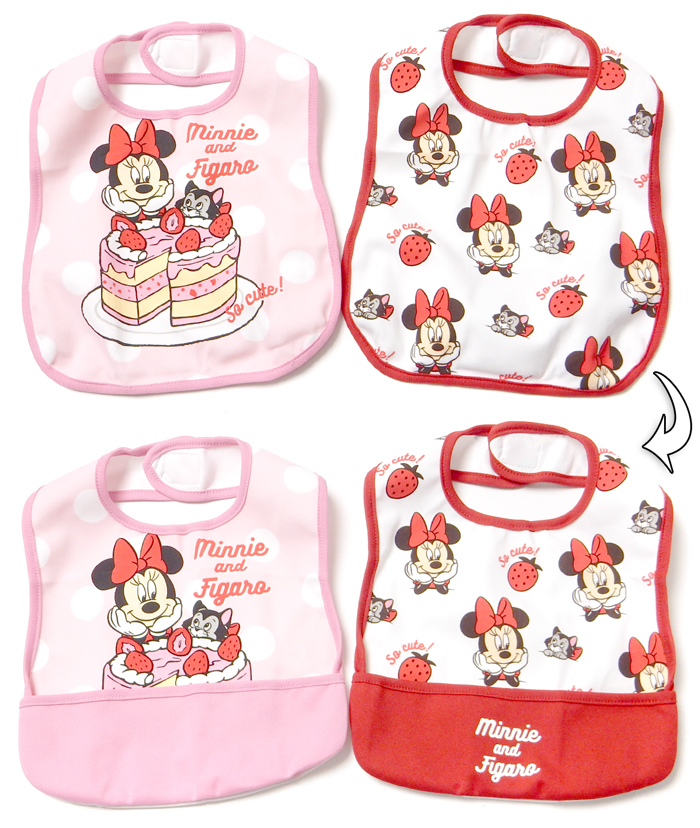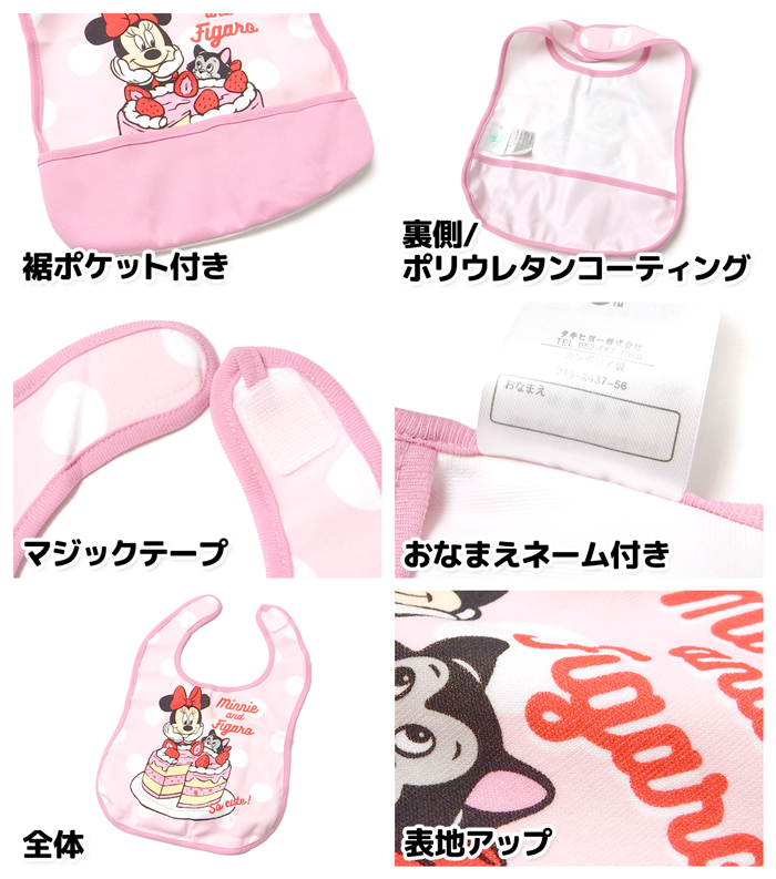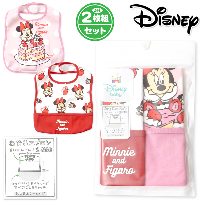 送料無料 2枚組セット 女児 ベビー お食事エプロン スタイ ミッキー 裾ポケット付き マジックテープ 女の子 iw-1288b-bb メール便対応