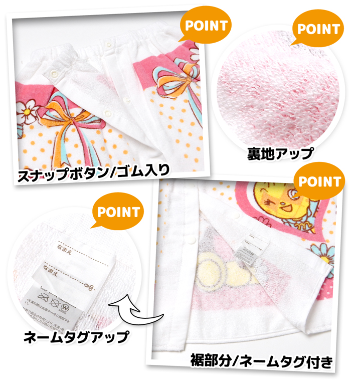 送料無料 女児 ベビー キッズ ラップタオル 50cm丈 アンパンマン 綿100% スナップボタン ネームタグ付き 子供 女の子 iw-1347 メール便対応