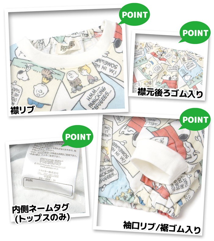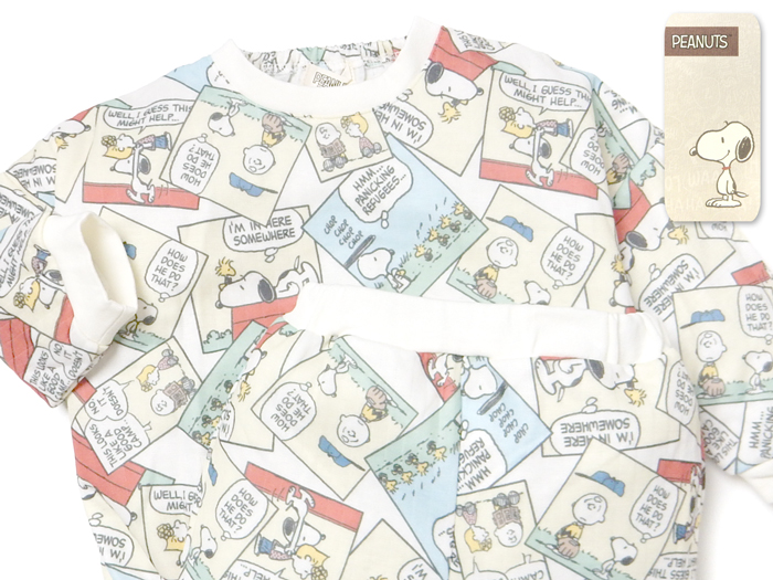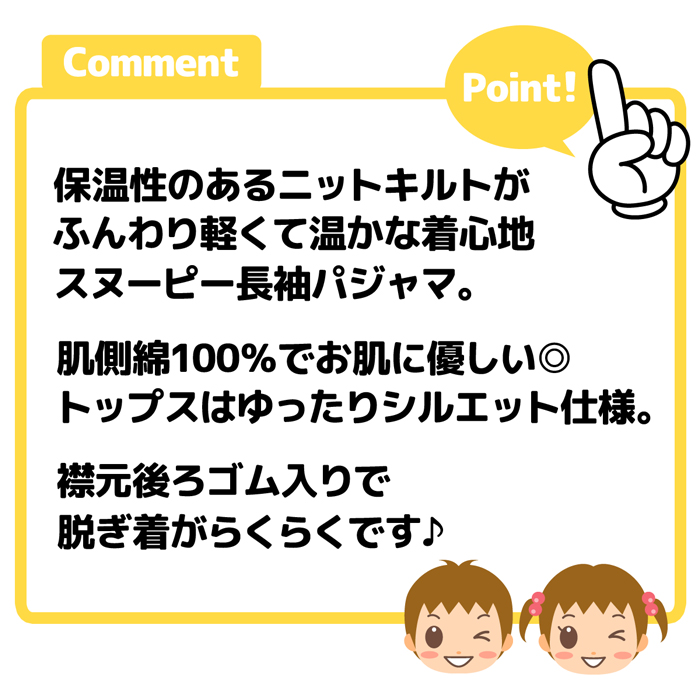 送料無料 男児 女児 ベビー ニットキルト 長袖 パジャマ SNOOPY スヌーピー 上下組 あったか素材 保温性 iw-1396 メール便対応