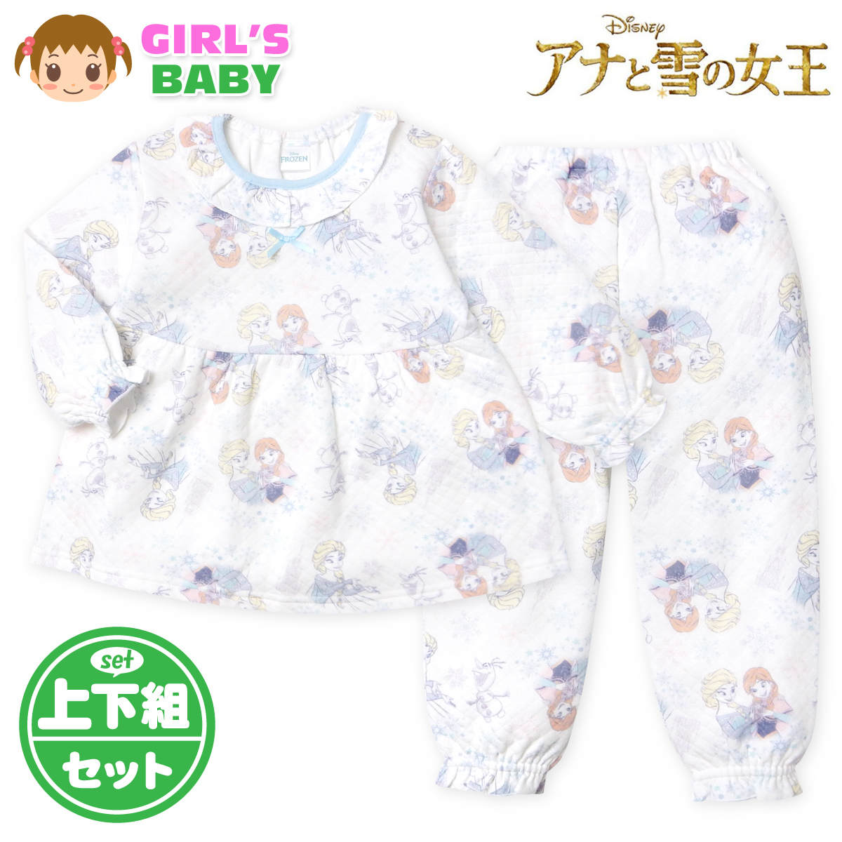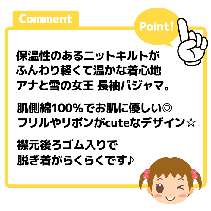 送料無料 女児 ベビー ニットキルト 長袖 パジャマ Disney ディズニー アナと雪の女王 上下組 あったか 保温 iw-1400 メール便対応