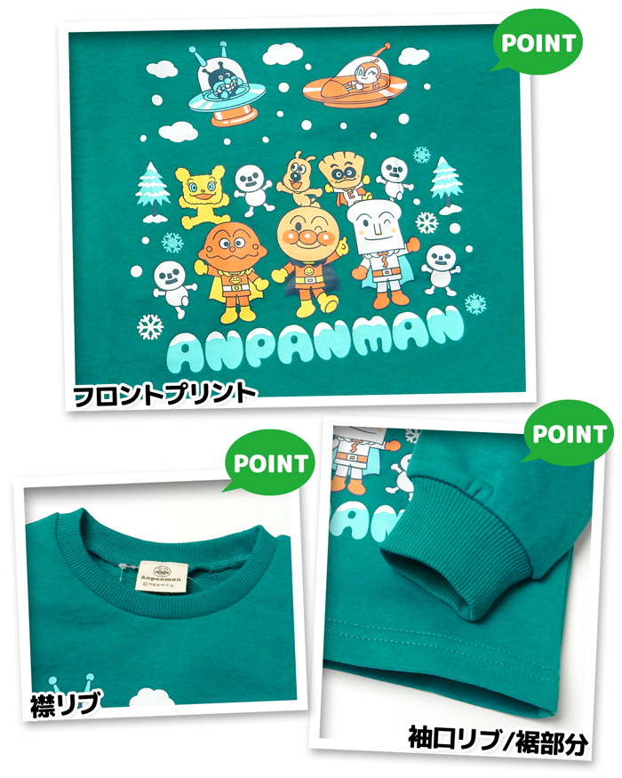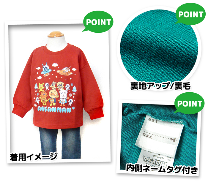 送料無料 男児 ベビー 裏毛 長袖 トレーナー スウェット アンパンマン 本体コットン100% ネームタグ ベビー服 男の子 iw-1416 メール便対応