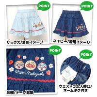 送料無料 女児 ベビー デニム フレア スカート アンパンマン 刺繍 フリル ウエストゴム ボトムス ベビー服 女の子 iw-1422 メール便対応