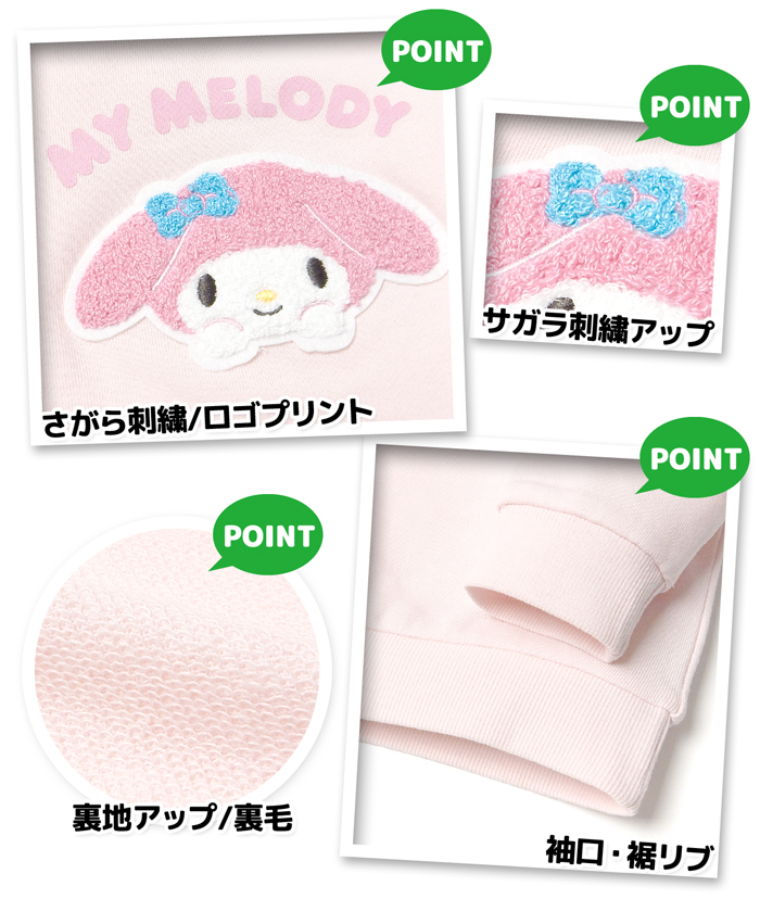 送料無料 女児 ベビー 裏毛 長袖 トレーナー Sanrio サンリオ マイメロディ サガラ刺繍 ベビー服 女の子 80cm 90cm 95cm iw-1437 メール便対応