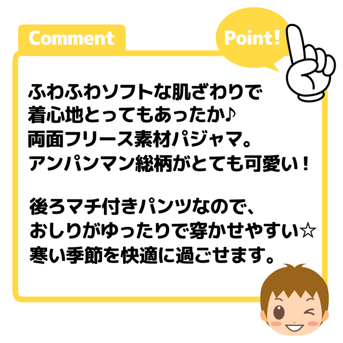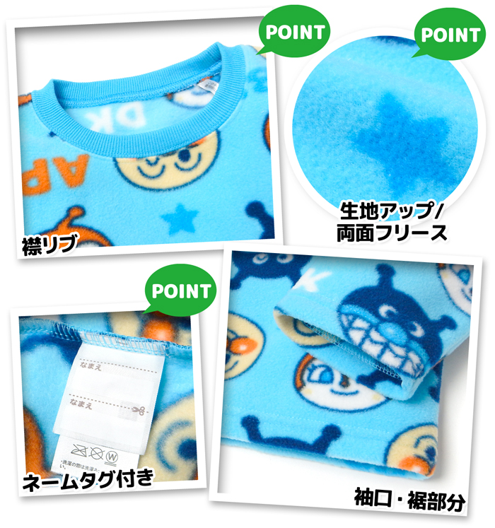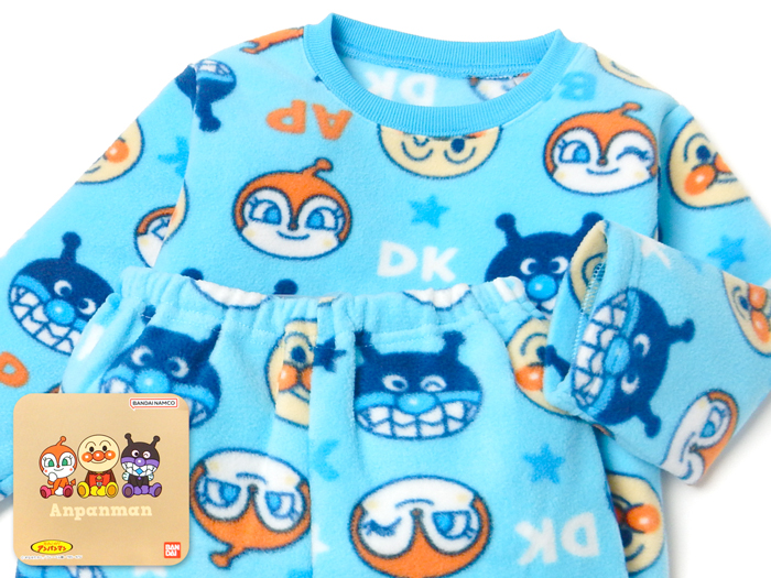 送料無料 男児 ベビー フリース 長袖 パジャマ アンパンマン あったか 保温 上下組 後ろマチ付きパンツ ネームタグ iw-1449b-sx メール便対応