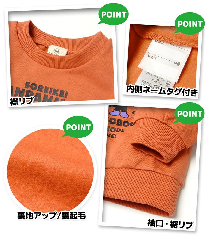 送料無料 男児 ベビー 裏起毛 長袖 トレーナー スウェット アンパンマン あったか素材 保温性 ベビー服 男の子 iw-1456 メール便対応