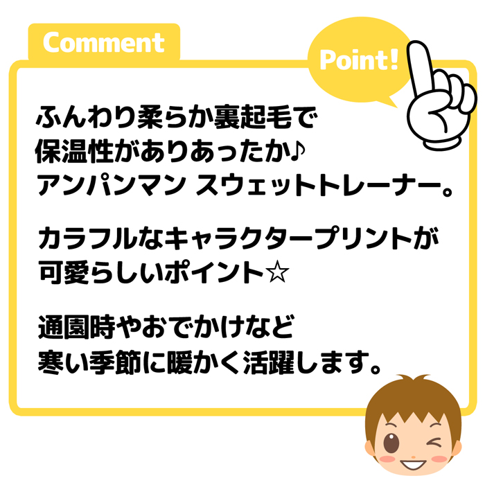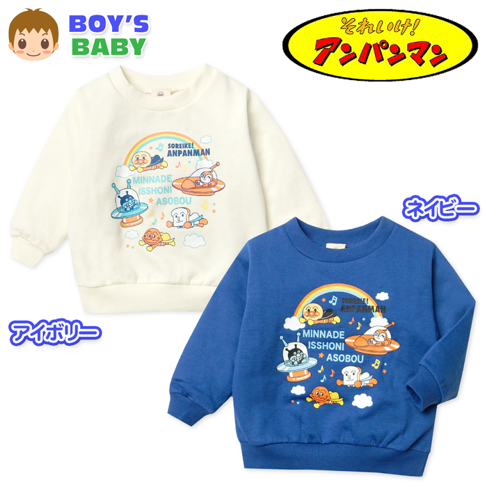 送料無料 男児 ベビー 裏起毛 長袖 トレーナー スウェット アンパンマン あったか素材 保温性 ベビー服 男の子 iw-1458 メール便対応