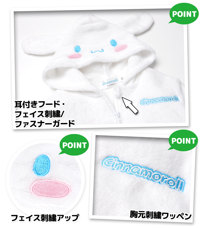 送料無料 女児 ベビー フリース パーカー ジャケット アウター Sanrio サンリオ シナモロール あったか フルジップ iw-1473 メール便対応