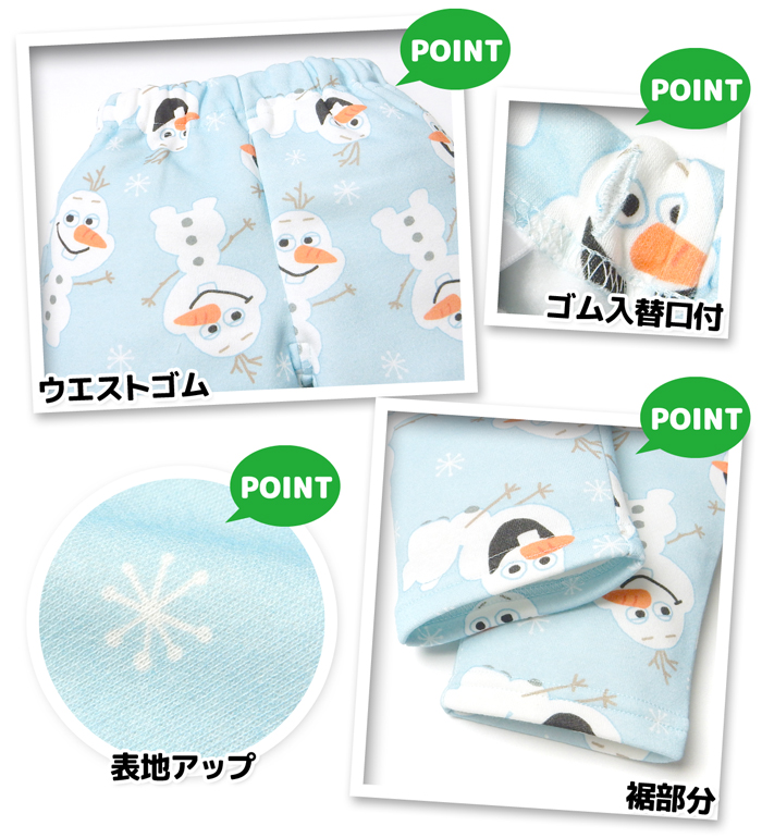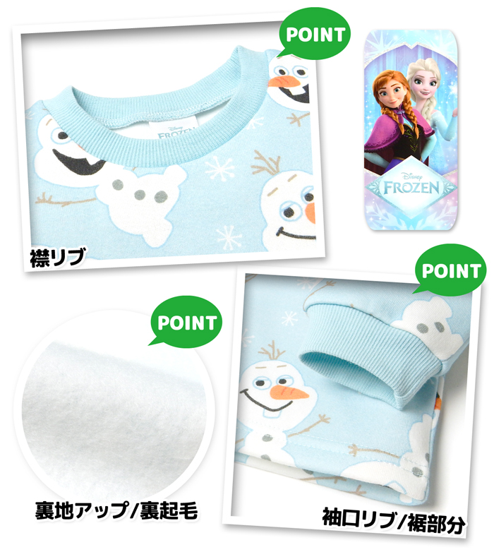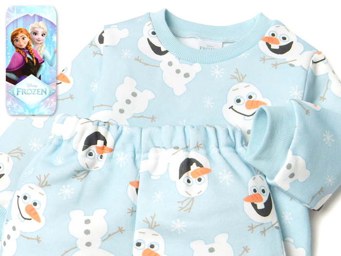 送料無料 女児 ベビー 裏起毛 長袖 パジャマ Disney ディズニー アナと雪の女王 オラフ 上下組 あったか 保温 iw-1481a-sx メール便対応