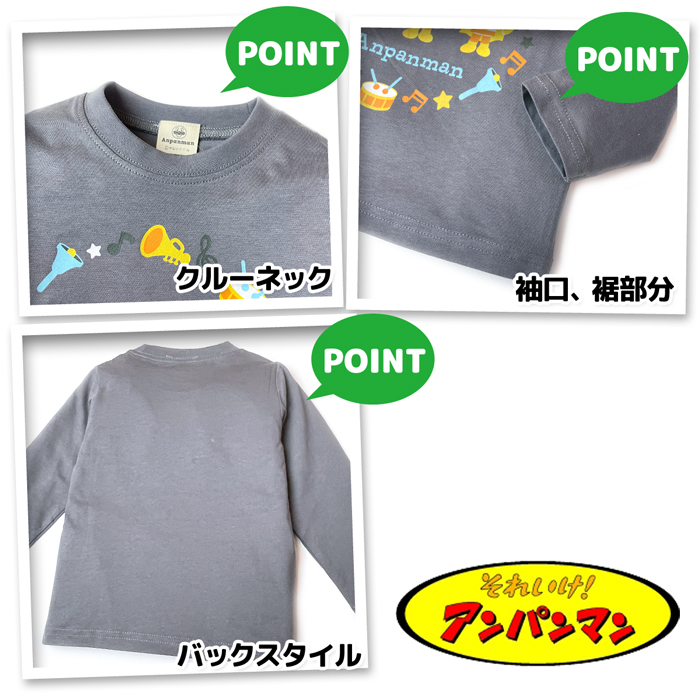 送料無料 アンパンマン 長袖 Tシャツ ロンT 男児 ベビー 男の子 キャラクタープリント 綿100% ベビー服 子供服 90cm 95cm iw-1502