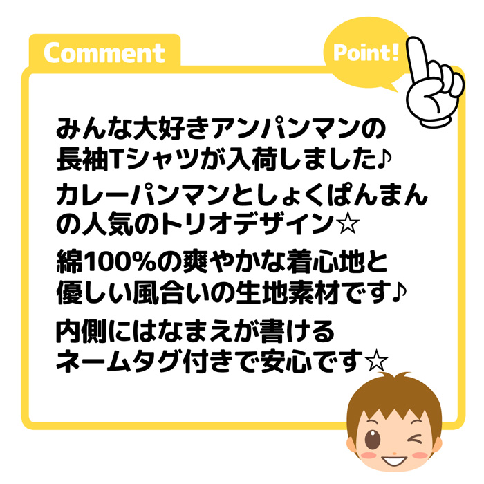 みんな大好きアンパンマンの長袖Tシャツが入荷しました♪