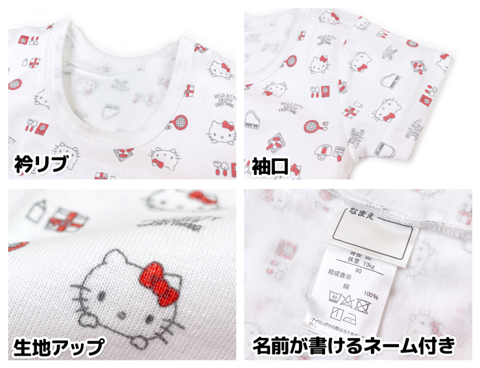 送料無料 2枚組セット ハローキティ 半袖 シャツ 女児 ベビー 女の子 綿100% 肌着 下着 インナー サンリオ 90cm iw-1513