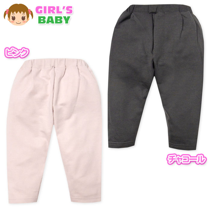 送料無料 女児 ベビー ミニ裏毛 9分丈 パンツ くすみカラー 無地 ウエストゴム ボトムス ベビー服 女の子 jt-0249 メール便対応