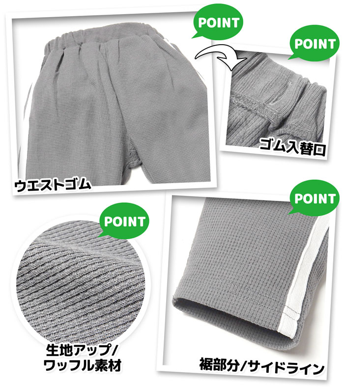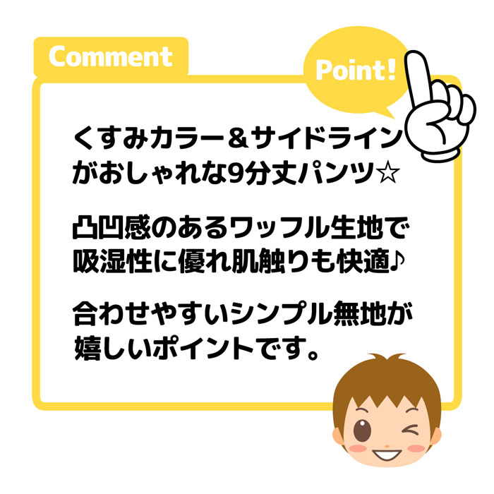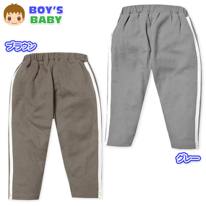 送料無料 男児 ベビー ワッフル素材 9分丈 パンツ くすみカラー サイドライン ウエストゴム ボトムス ベビー服 男の子 jt-0256 メール便対応