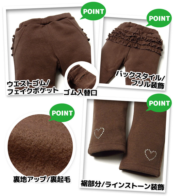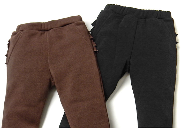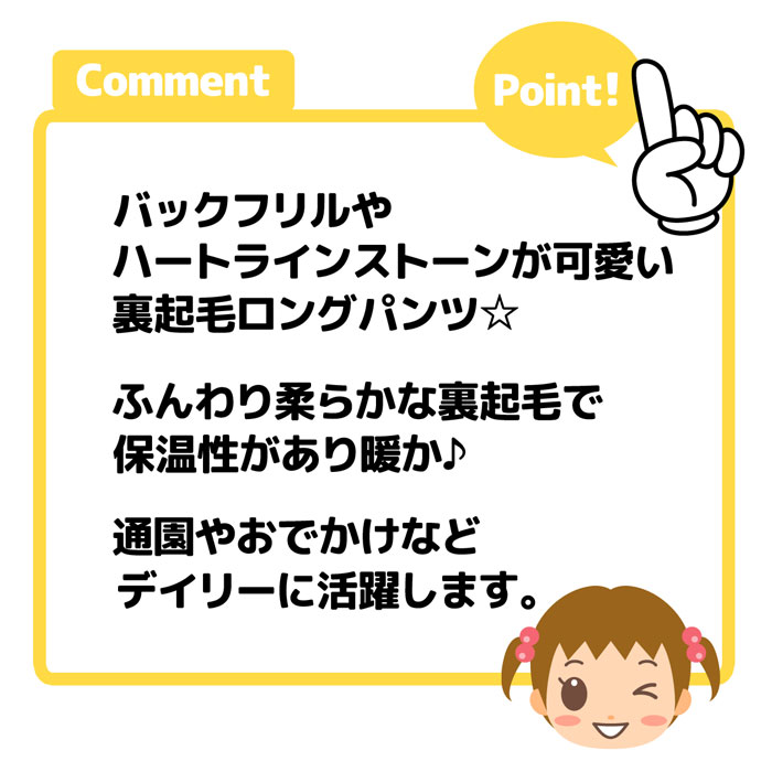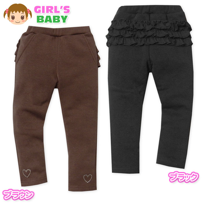 送料無料 女児 ベビー 裏起毛 ロング パンツ あったか 保温性 バックフリル ラインストーン ウエストゴム ボトムス ベビー服 女の子 jt-0284 メール便対応