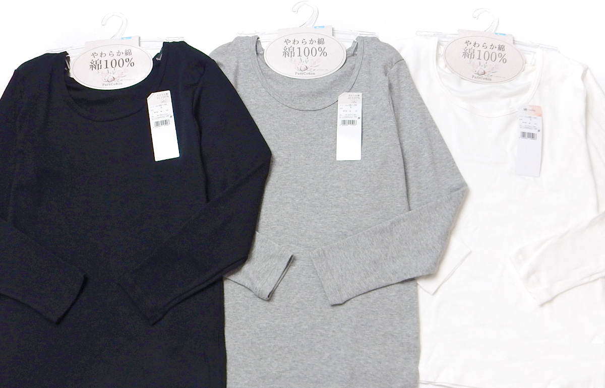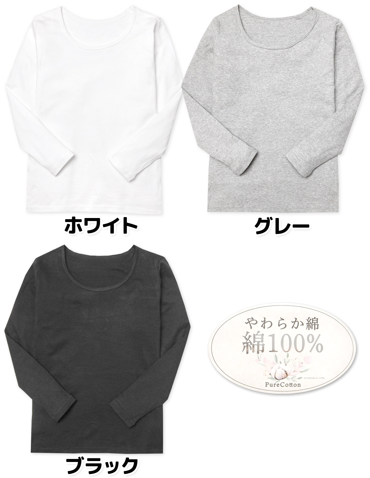 肌にやさしい天然素材の綿100%で着心地快適なレディース長袖インナー。