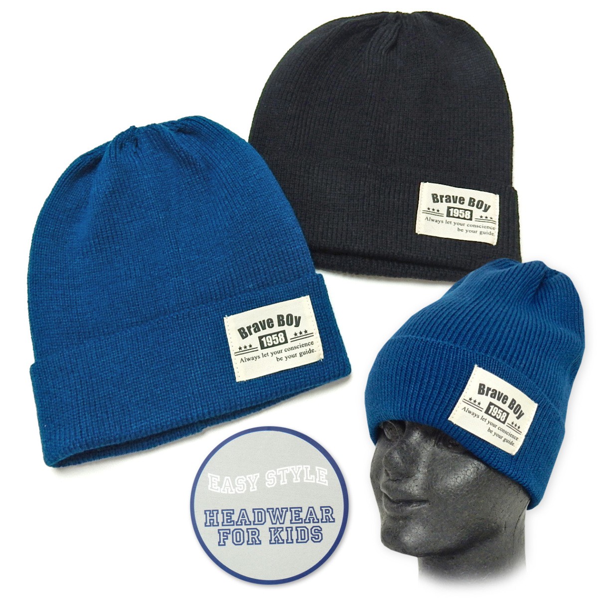 送料無料 男児 キッズ ジュニア ニット帽 あったか素材 保温性 伸縮性 防寒 ロゴフリー k-0127 メール便対応