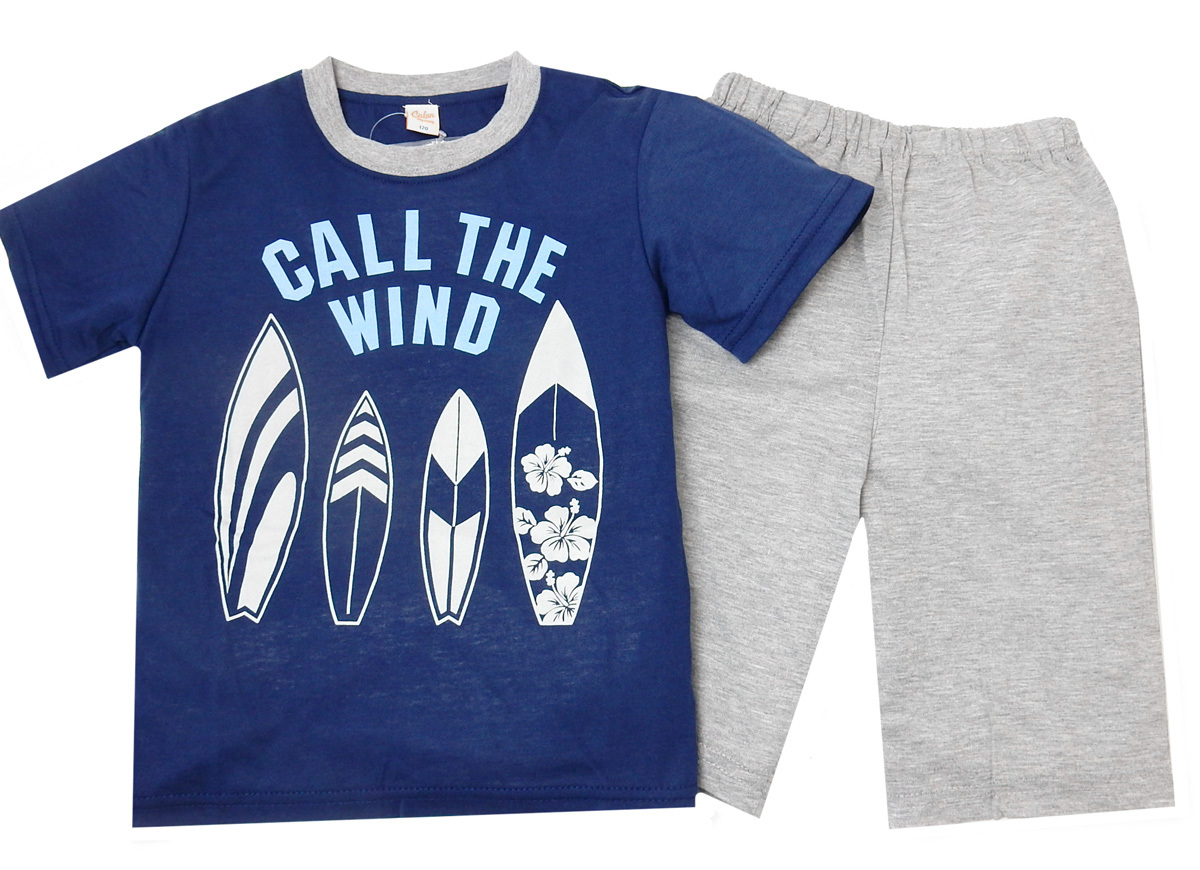 送料無料 男児 キッズ 綿混 半袖 パジャマ ロゴプリント ウエストゴム ポケット 上下組 子供服 男の子 my-0020a メール便対応