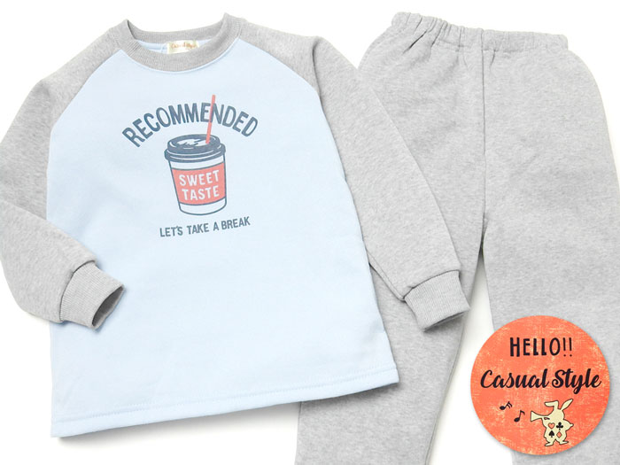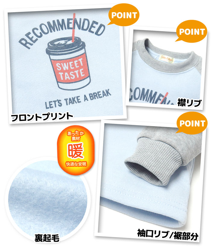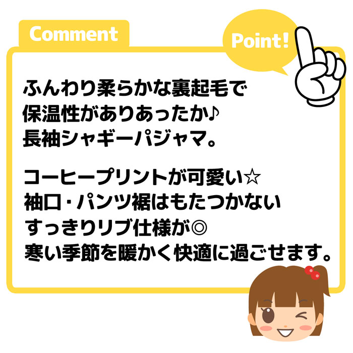 送料無料 女児 キッズ 裏起毛 長袖 パジャマ 上下組 あったか 保温性 スウェット コーヒー 子供服 女の子 my-0067a-bl