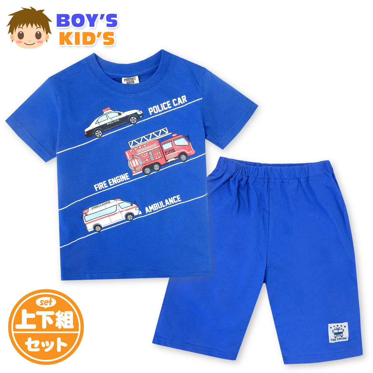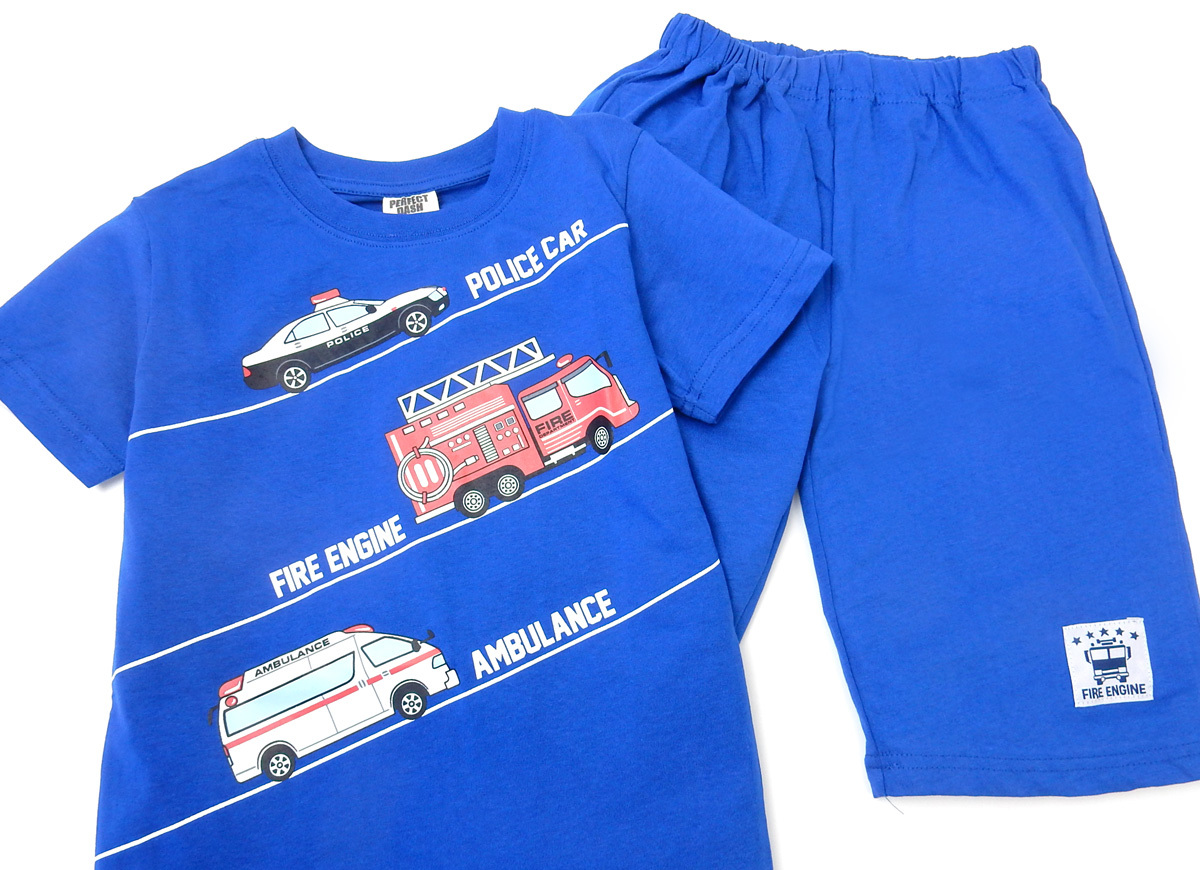 送料無料 男児 キッズ 本体綿100% 半袖 Tシャツスーツ 上下組 乗り物プリント nw-0255a メール便対応