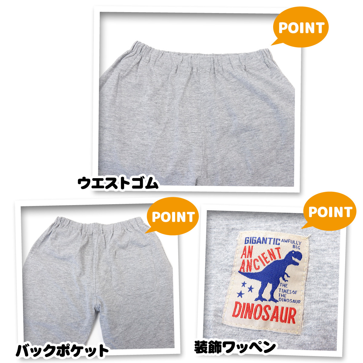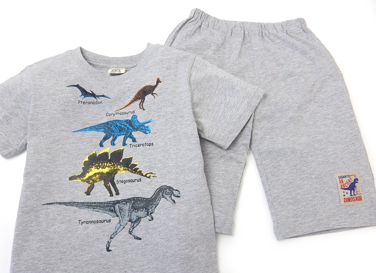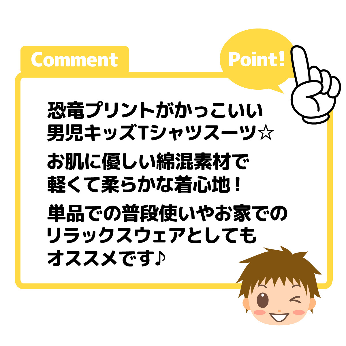 送料無料 男児 キッズ 綿混 半袖 Tシャツスーツ 上下組 恐竜プリント nw-0284b メール便対応