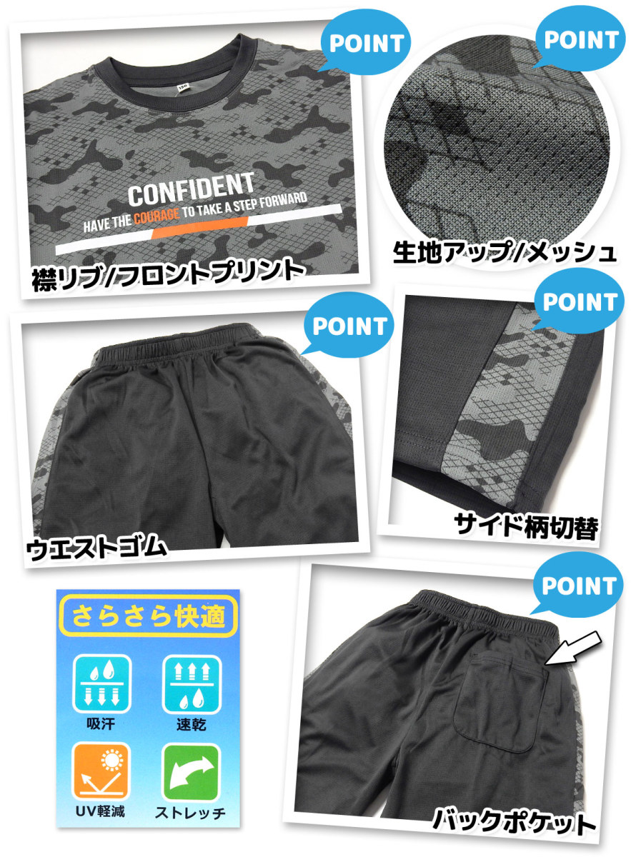 送料無料 男児 ジュニア 吸汗速乾 半袖 Tシャツスーツ 上下組 ハーフパンツ メッシュ UV軽減 ストレッチ nw-0715b-gy メール便対応