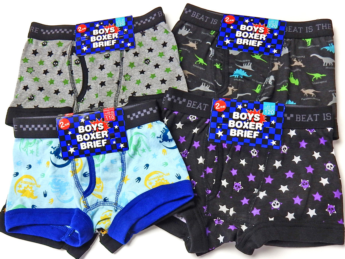 送料無料 男児 キッズ 当店おまかせ 2枚組 ボクサーブリーフ 前開き 綿混 ストレッチ 伸縮性 下着 on-0038 メール便対応
