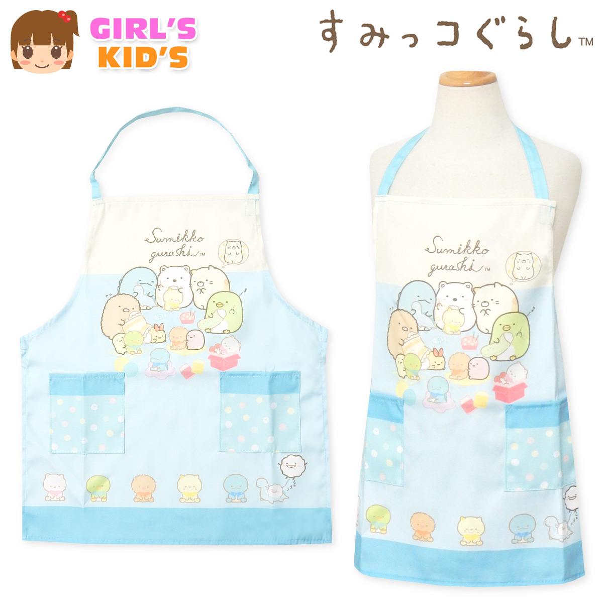 送料無料 女児 キッズ すみっコぐらし エプロン マジックテープ ひも留め ポケット付き 子供 女の子 110cm sl-0371 メール便対応