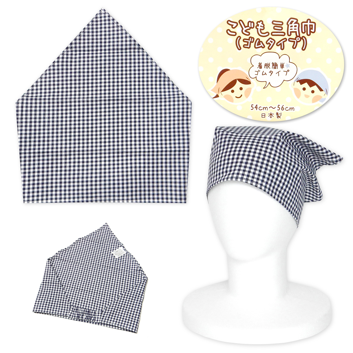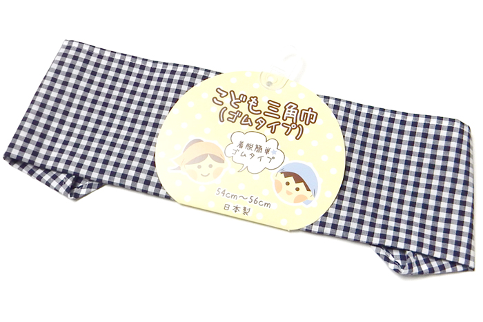 送料無料 男児 女児 キッズ ジュニア 三角巾 ゴムタイプ 着脱簡単 日本製 綿100% チェック 子供 54cm〜56cm sl-0548a メール便対応