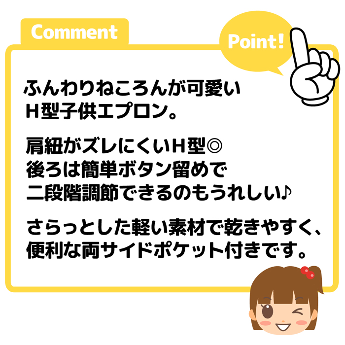 送料無料 女児 キッズ H型 エプロン ふんわりねころん 後ろボタン留め 2段階調節 ポケット付き 子供 110cm 130cm sl-0611 メール便対応