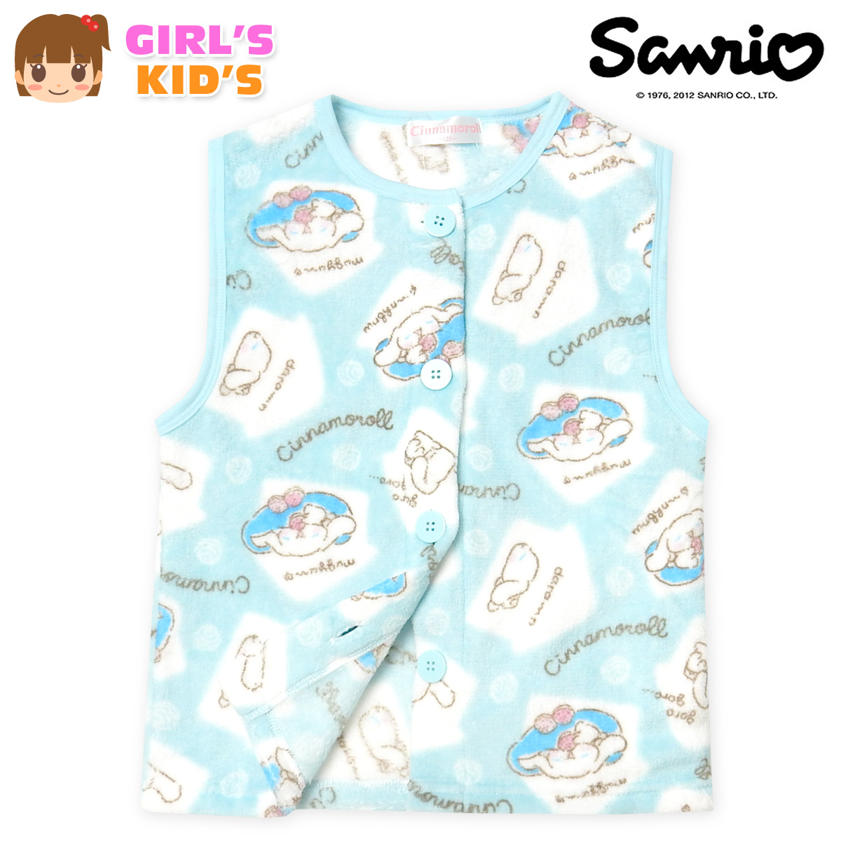 送料無料 女児 キッズ フリース ベスト スリーパー シナモロール あったか素材 パジャマ 総柄 前開きボタン 子供服 女の子 td-0756 メール便対応
