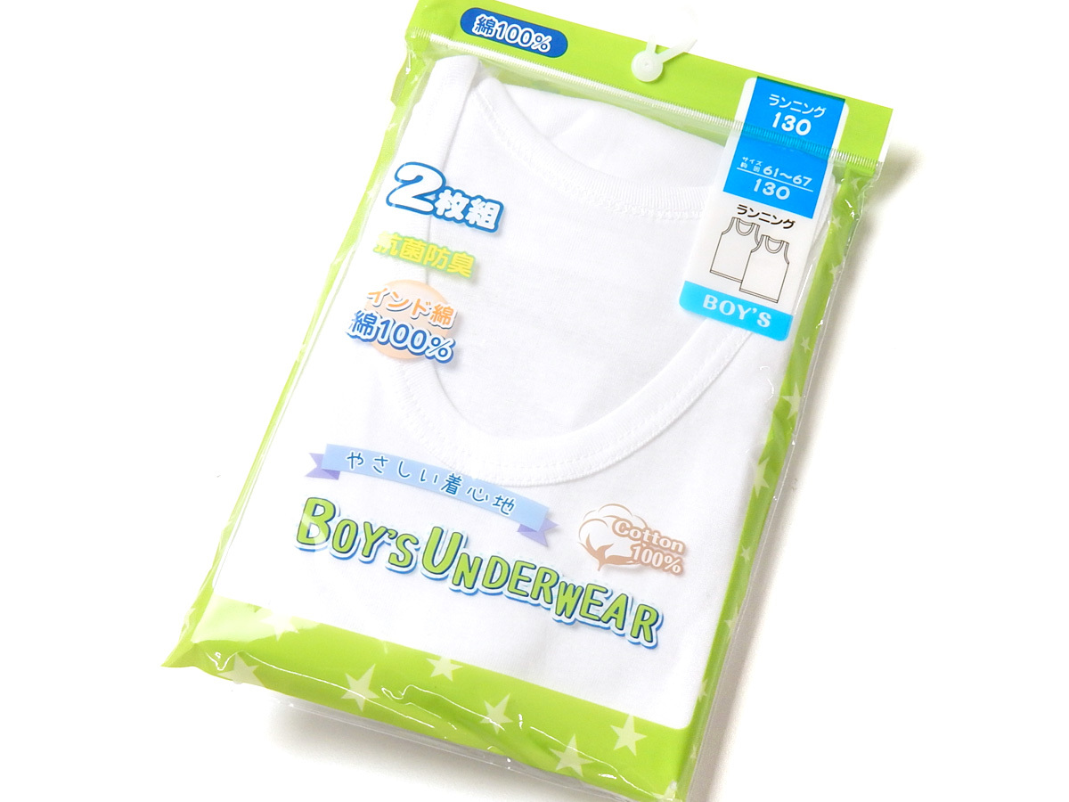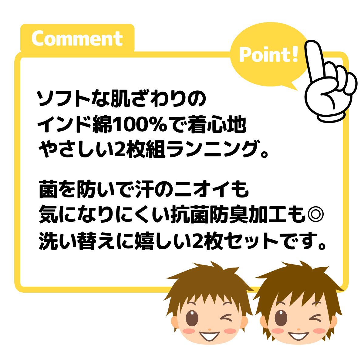 送料無料 男児 キッズ ジュニア 2枚組 ランニング 綿100% 抗菌防臭 下着 子供 男の子 yg-0519 メール便対応