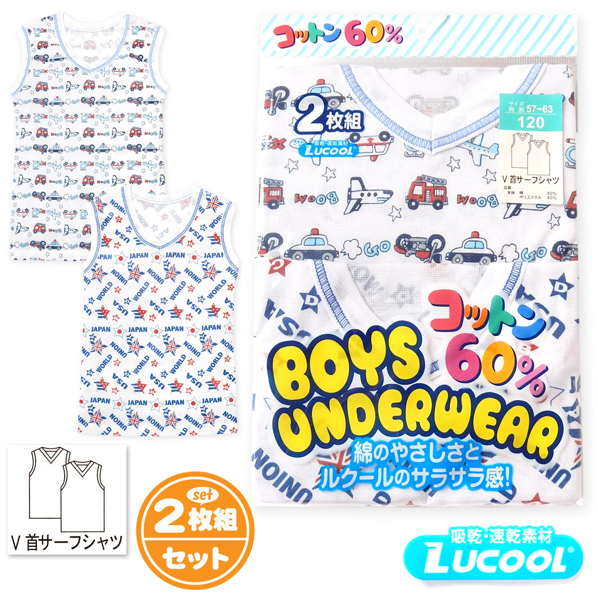 送料無料 男児 キッズ 2枚組 V首サーフシャツ 吸汗速乾 ルクール 綿混 乗り物柄 国旗柄 肌着 下着 yg-0662 メール便対応